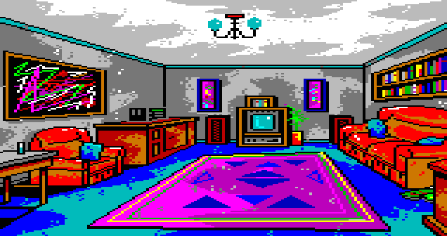 Jones's appartment has a paintings, a sofa, armchairs and an Evryware Stereo X-1000. Inside it he has hidden Module C.