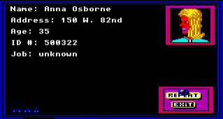 She had learned that a second module is located somewhere inside Bellevue Hospital. To investigate, she planted an explosive device on a side wall. Upon entering, she discovers that she can go no further thanks to a guard robot blocking the inner door. Thus thwarted, she leaves, taking a quick glance at the corpse of Reno Davis lying on a table nearby.
