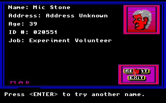 When he was normal he had a Driver's License, but eventually was mutated to a ratman hybrid. He resided in a tunnel near Embarcadero Fountain. His biggest desire was to become human again.
